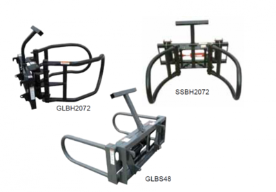 Hay handling Att achments Tractor Loader & Skid Steer Mount Bale Squeeze The GLBH2072/SSBH2072 Bale Squeeze for up to 2200 lb. features smooth curved clamping arms to prevent puncturing wrapped bale...
